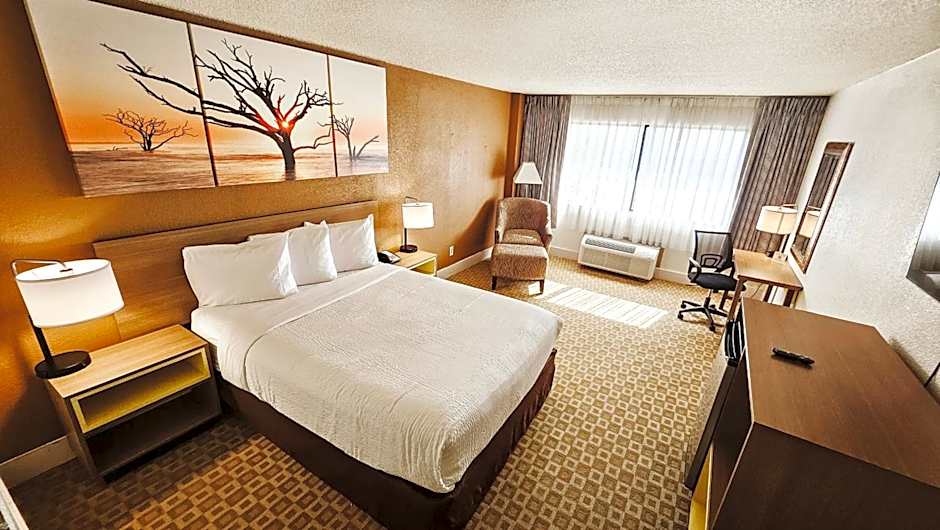 A flat-screen TV with cable and satellite channels is provided in this room. A refrigerator, microwave and desk are also included.